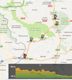 Diese Route verbindet die Städte Caceres und Badajoz und führt zuerst