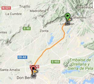 de la Serena mit Logrosán und folgt einer alten Eisenbahntrasse, die